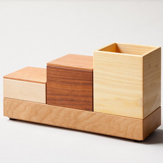 家具を製作したときに出た端材で作った、積み重ねのできる整理箱